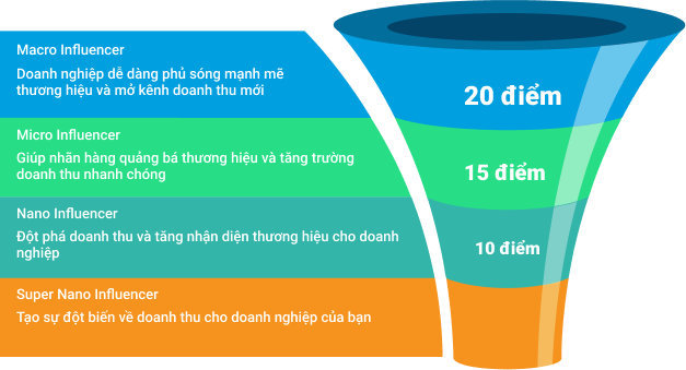 | Số điểm/Influencer | 20 điểm | 15 điểm | 10 điểm |